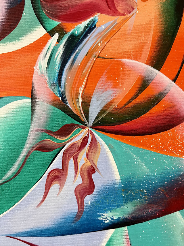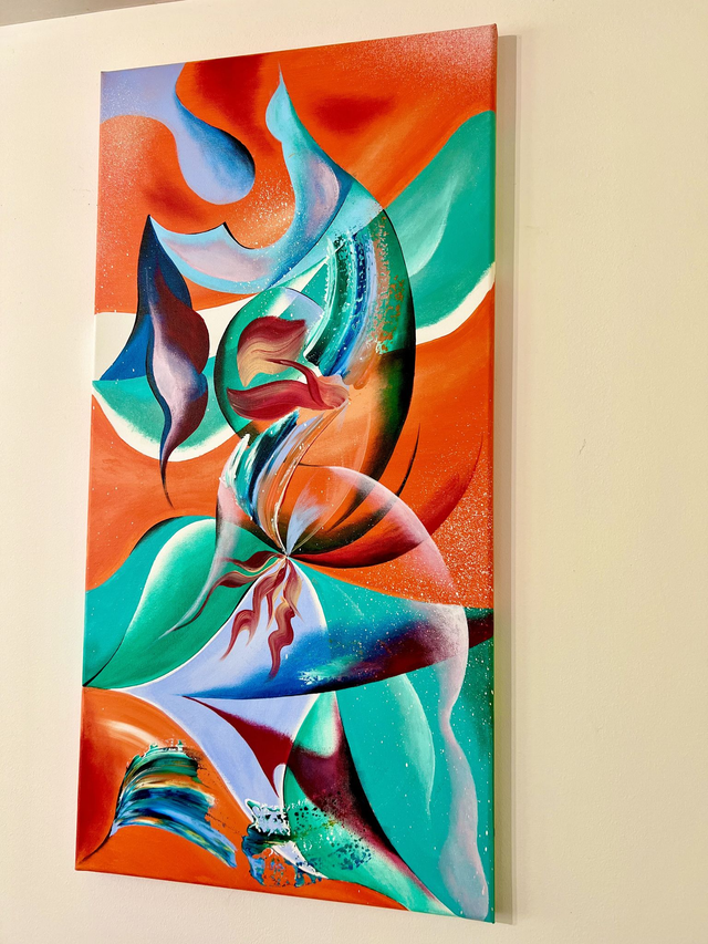 Cette œuvre est un véritable tourbillon d'émotions capturé sur la toile. J'ai utilisé des acryliques pour mélanger des tons vibrants d'orange et de turquoise, créant un dialogue entre la chaleur et la fraîcheur. Inspiré par l'abstraction, l'expressionnisme et le fauvisme, ce tableau abstrait est une danse énergique de formes et de couleurs. Il invite à la contemplation et inspire un sentiment de joie et d'évasion. Signé au dos, il peut aussi bien s'apprécier à la verticale qu'à l'horizaontale. Cette pièce apportera dynamisme et vitalité à votre espace.